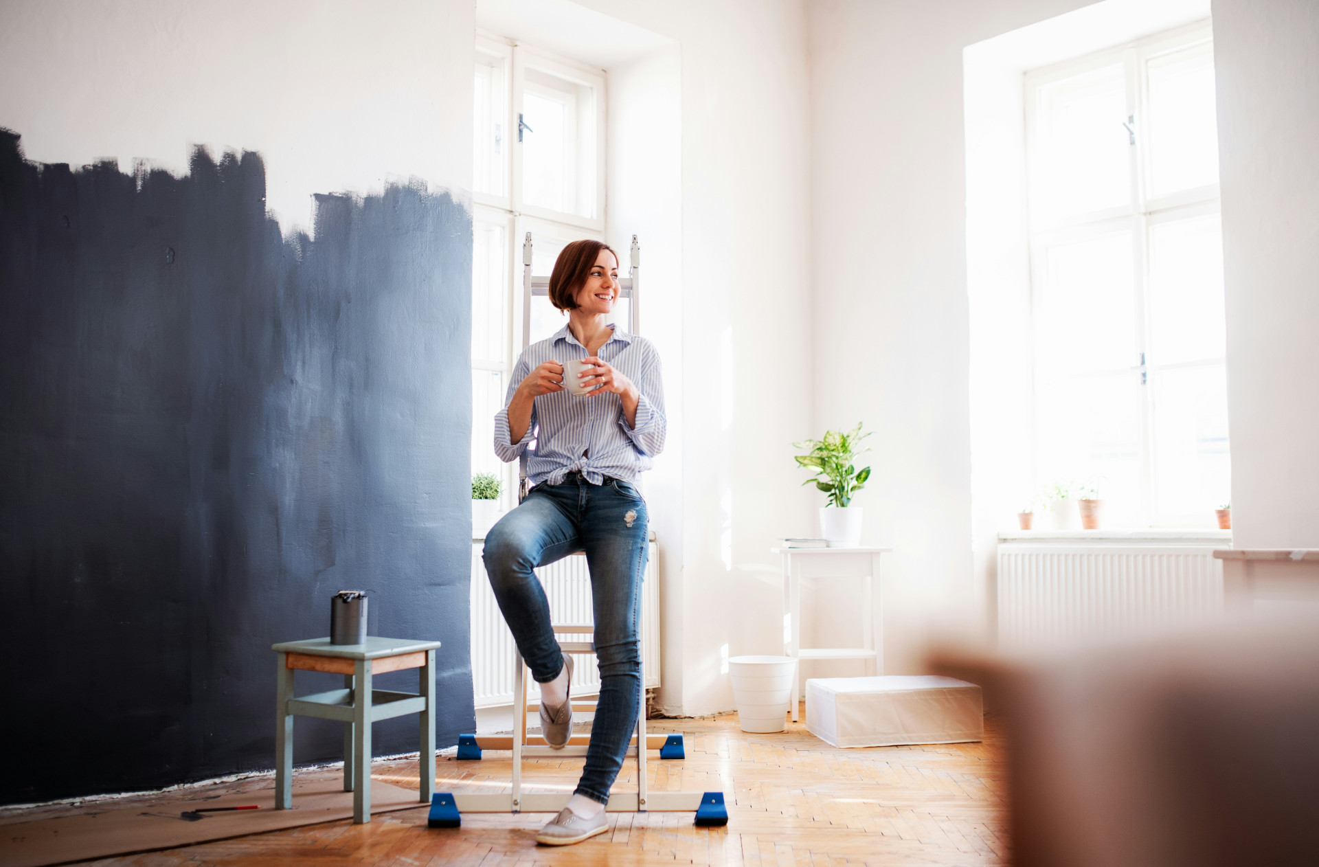 När du målar i minimalistisk stil är målet en slät och jämn yta utan synliga penseldrag. Använd en kvalitetsroller för de stora ytorna och en mindre pensel för detaljer och kanter.