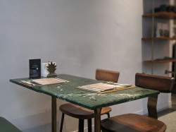 GUBI 1.0 Matbord Rundt Ø60 cm är en designmöbel som kombinerar funktionalitet och estetik i ett kompakt format. Bordet har en rund grön Guatemala-marmorskiva som ger ett naturligt och karaktärsfullt utseende, medan den svarta pulverlackerade metallbasen tillför ett modernt och balanserat uttryck.
